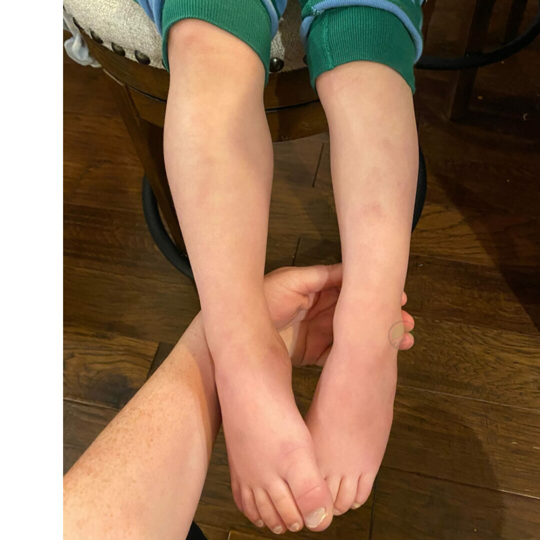 Elevate kid Sage, complained of a painful calf, mom, Natalie found a hard lump there and called on a Friday to get an appointment that was scheduled for the following Monday. They determined by MRI at the local hospital that it was a sarcoma of some kind and were being sent to a children’s hospital, less than a week later, to find out it was Rhabdomyosarcoma.