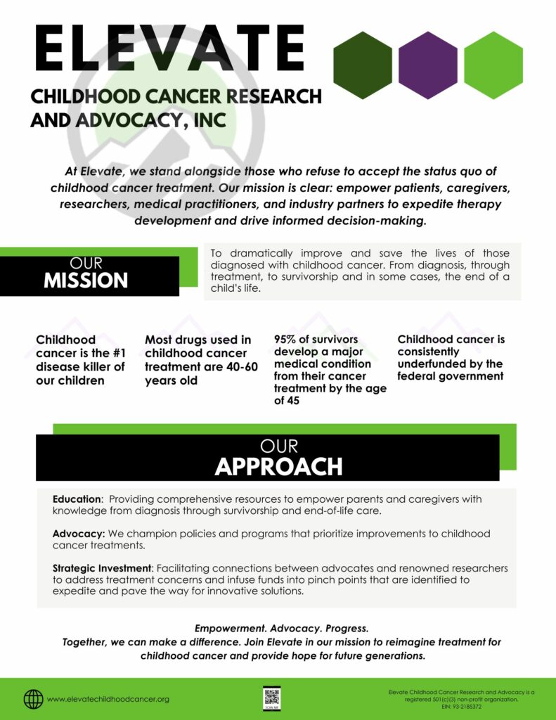 @2023 ELEVATE Childhood Cancer Research and Advocacy, Inc. is a registered 501 (c)(3) non-profit organization.